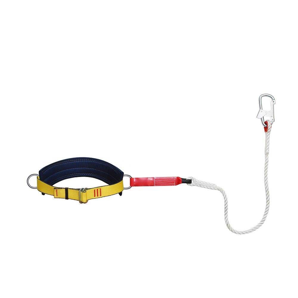 Качественное средство страховки, применяемое во время проведения различных работ на высоких строительных объектах, в глубоких шахтах и везде, где существует риск падения. Включает прочный ремень с застежкой (позволяет быстро регулировать длину пояса под конкретный размер), широкую ремневую подкладку, удобные наплечные лямки, несколько крепежных D-образных колец, стропу, изготовленную из полиамидного каната и оснащенную прочным карабином. Строп соединен с амортизатором неразъемным способом крепления и предназначен для снижения усилия торможения при падении. Благодаря грамотно продуманной конструкции пояс весьма удобен в использовании и обеспечивает человеку на любой высоте надлежащую защиту.