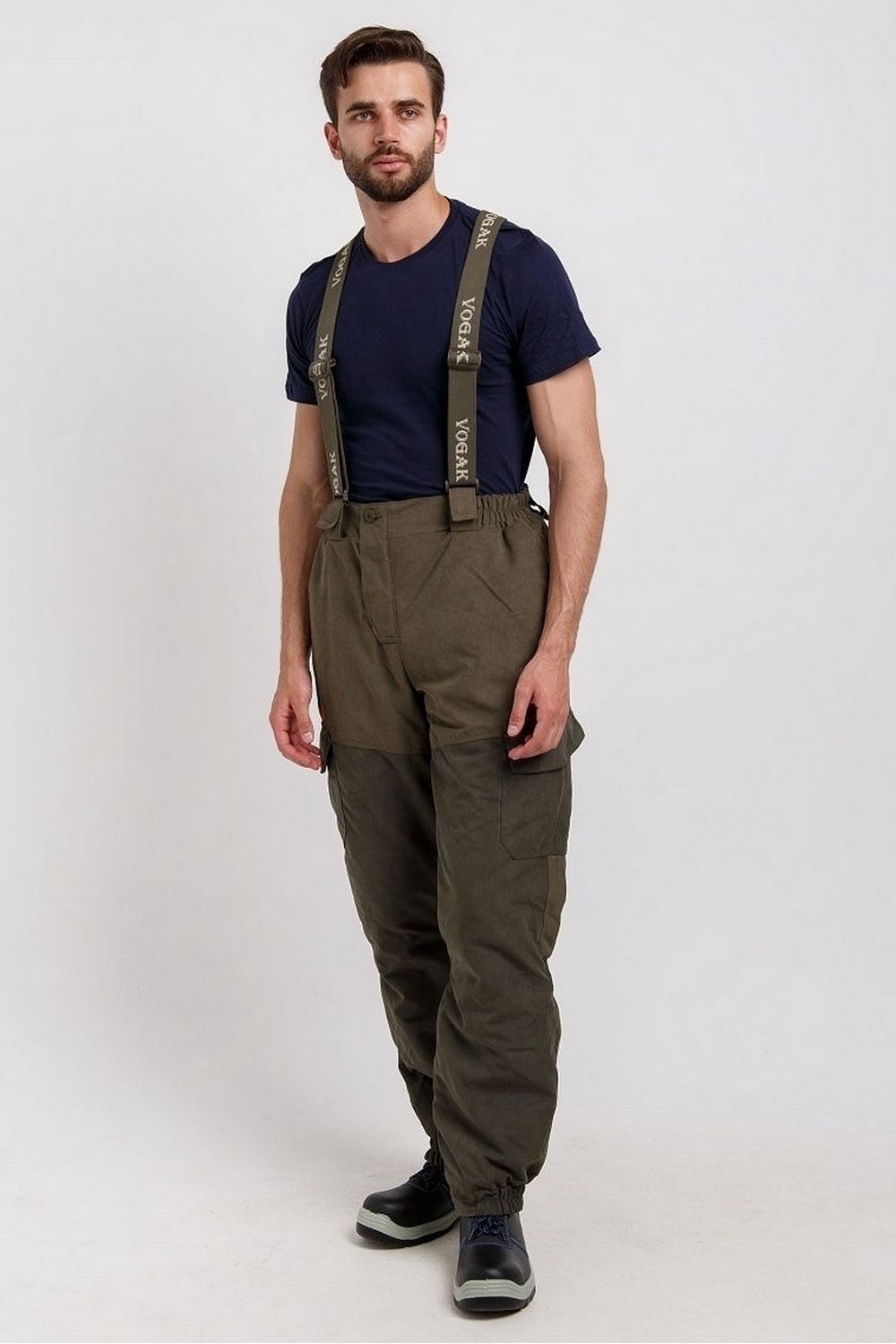 Брюки анатомического кроя, не стесняют движения. К брюкам пристегивается на молнию спинка с флисовой подкладкой. На брюках предусмотрены четыре широкие шлевки под ремень. Два боковых врезных кармана застегиваются на молнию. Два боковых накладных кармана застегиваются на кнопку. Утеплитель термофин 100 гр, подкладка   таффета. Низ брюк на резинке.