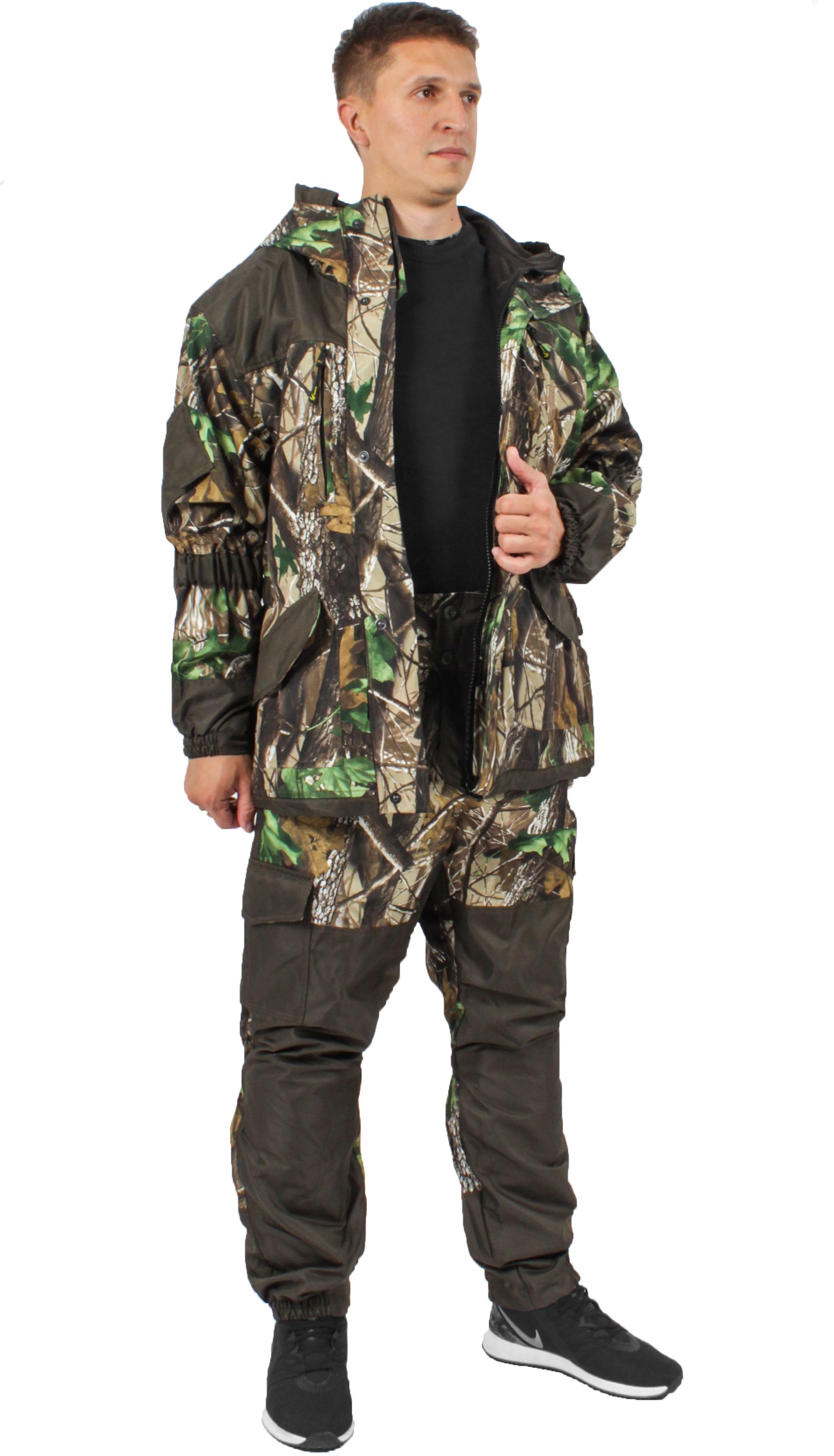 - ветровлагозащитный костюм для охоты и рыбалки состоит из куртки и полукомбинезона