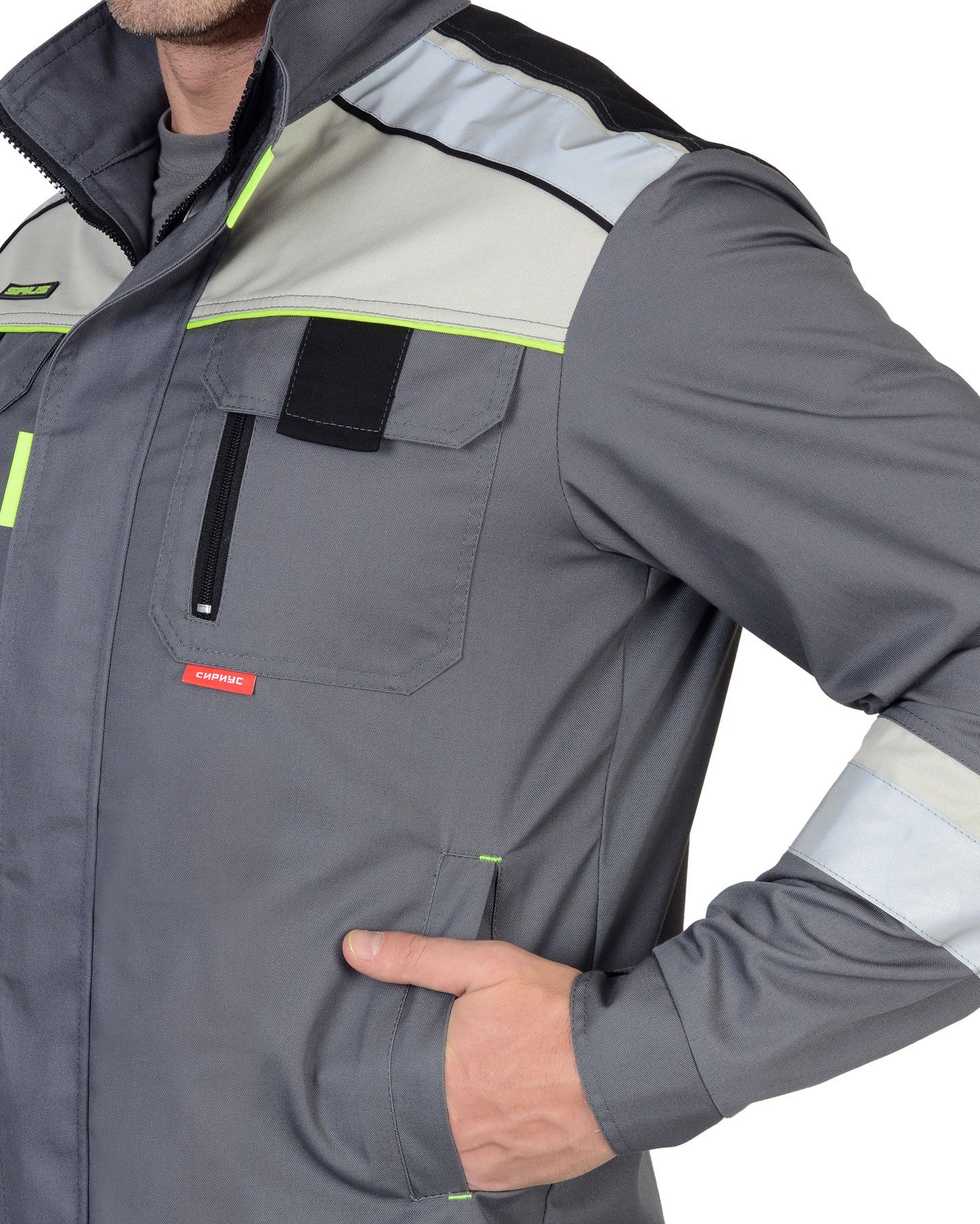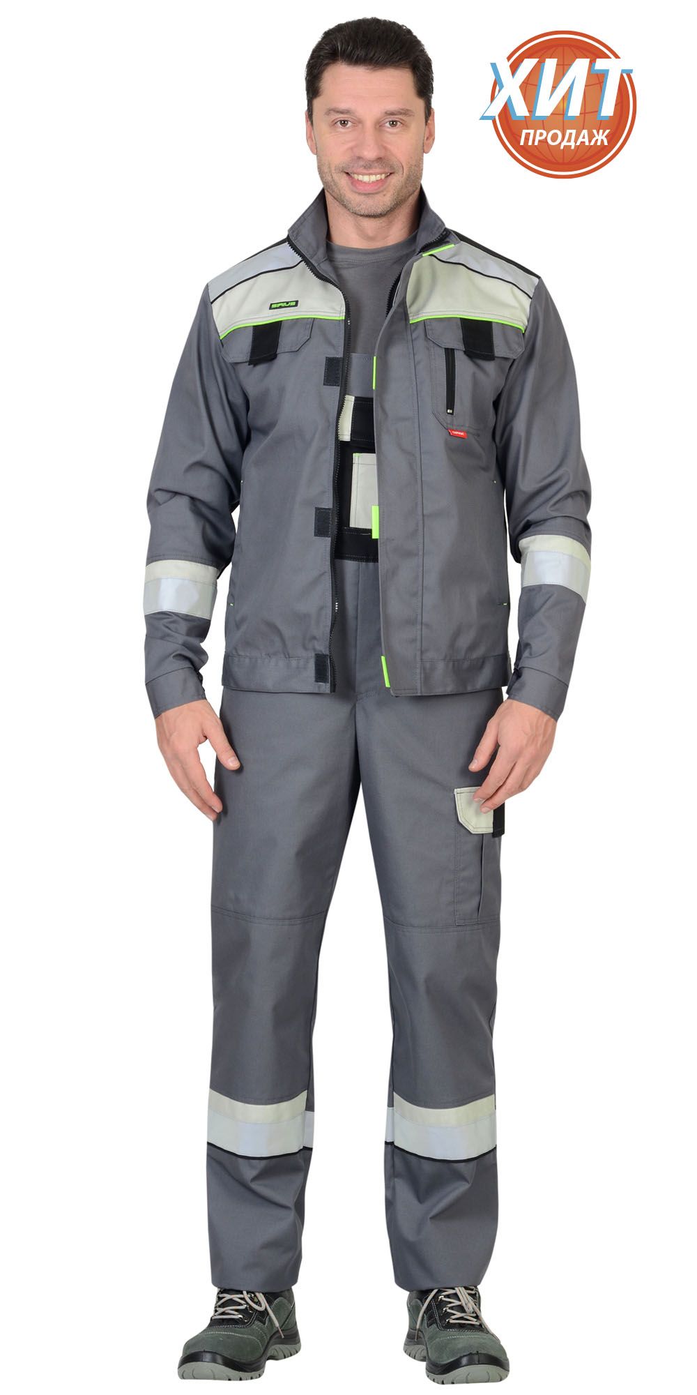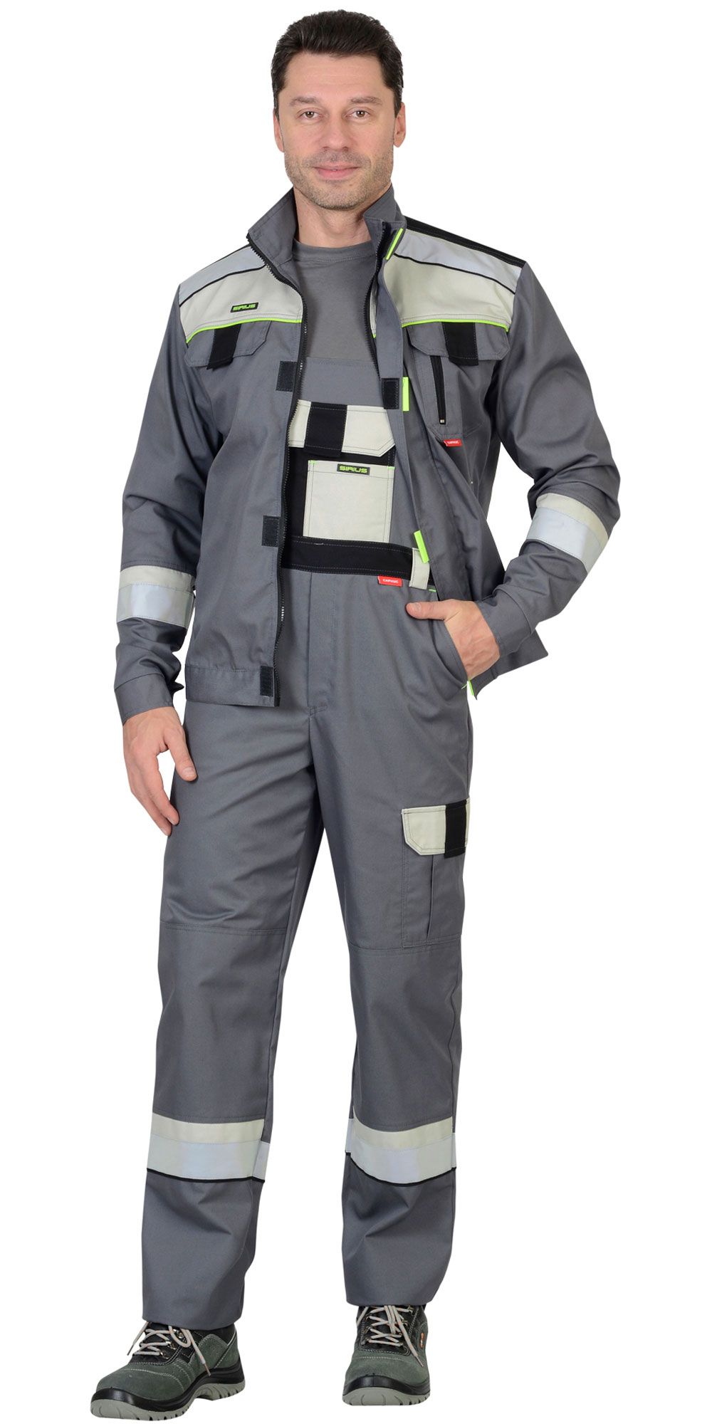 Костюм мужской летний «BOSTON» для защиты от общих производственных загрязнений. Куртка прямого силуэта, укороченная на молнии с ветрозащитным клапаном. В костюме используется СОП шириной 50мм св.серый и светоотражающий кант лимонного цвета.