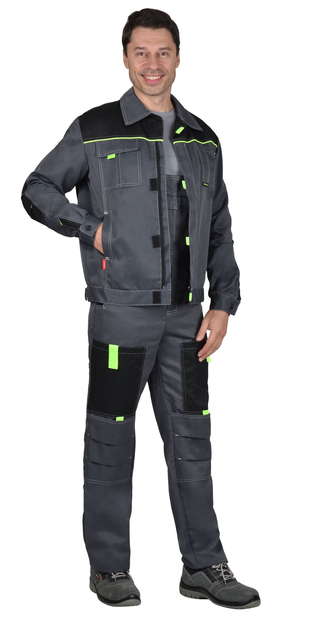 Костюм мужской летний "Фаворит" (куртка+п/комб.) т.серый с черным и лимон. кантом (ЧЗ)