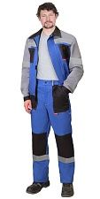 Костюм состоит из куртки и полукомбинезона. Куртка, укороченная с центральной потайной застежкой на молнию, застежкой борта и пояса на липучку. Верхние карманы с клапанами и хлястиком, застегивающимися на липучку. Боковые карманы в вертикальных швах. Пояс регулируется хлястиком на липучке. Воротник отложной. Вертикальные складки спинки увеличивают свободу движения. Контрастная отстрочка швов придает костюму оригинальность. Полукомбинезон, комбинированный с усиленными накладками в области колен, объем по линии талии регулируется тесьмой. Рекомендуется для рабочих специальностей. Современная практичная в эксплуатации и очень экономичная модель летней спецодежды.