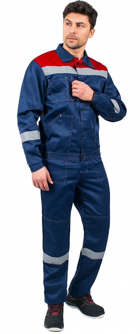 Костюм мужской летний "Лигор-1 СОП" (куртка+брюки) т.синий/красный, тк.Смесовая,210 (ЧЗ)