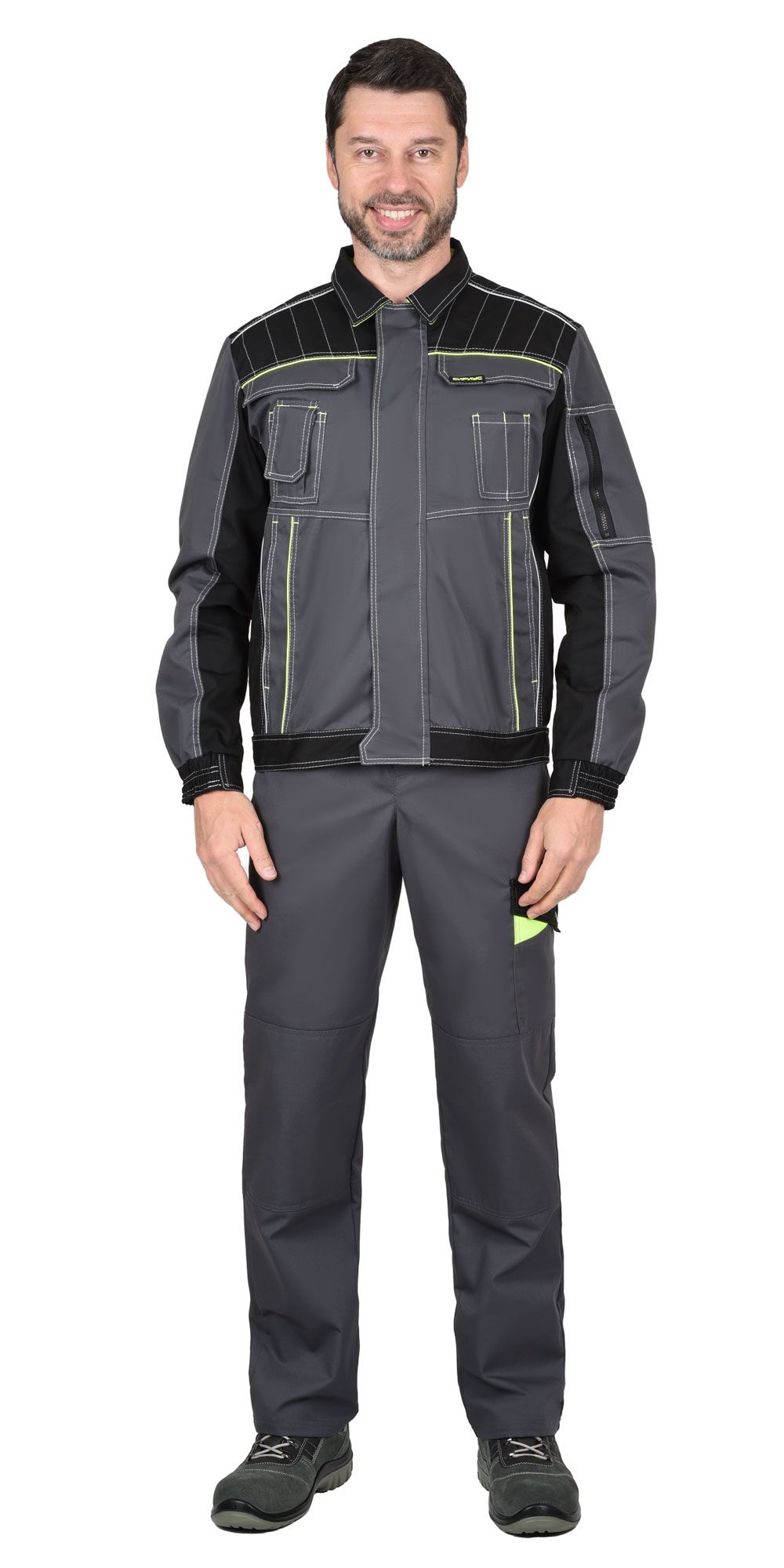 Костюм мужской летний "Престиж" (куртка+брюки) т.серый с лимонным кантом тк. Rodos (245 гр/кв.м)