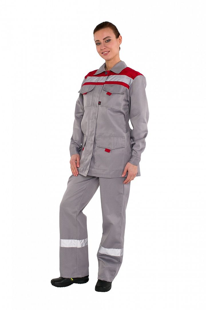 Костюм женский летний «Весна-СОП» (п/комб.) серый/красный