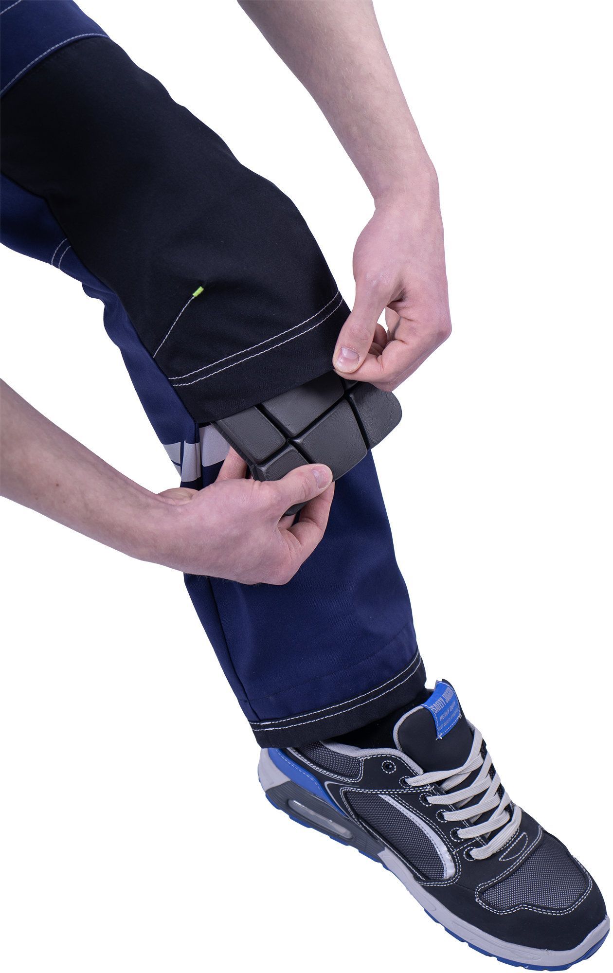 • под наколенниками охватывающая термоклеевая световозвращающая полоса шириной 30 мм